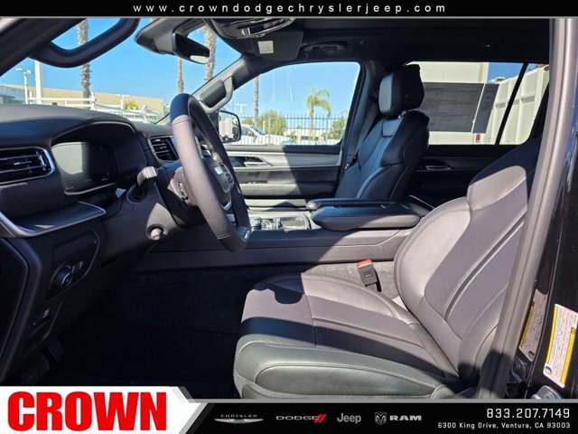 Diamond Black Crystal Pearlcoat 2025 Jeep Wagoneer L Series II 4WD 8-Speed Automatic 3.0L I6Here at Crown Dodge Chrysler Jeep RAM, we believe that great service means more than just offering our new Dodge, Chrysler, Jeep, and RAM lineup. We believe that great service also includes helpful advice, friendly car financing, and the highest quality parts and repairs for your car. Our staff works hard to make your full automotive experience at our car dealership in Ventura, CA enjoyable, and we look forward to helping you today! All vehicles at Crown Dodge have our SWAT security system $995, Nitro $499, Clear Shield $395, touchscreen $395, wheel locks $395, windshield treatment $995, pulse breaking lights $395, paint and fabric protection, $1295pre-installed.The vehicle depicted is NOT the actual vehicle offered for sale by the Dealer. The photo represents a similar vehicle of the year, make, and model of the actual vehicle. Crown Dodge is home of the low-price guarantee!