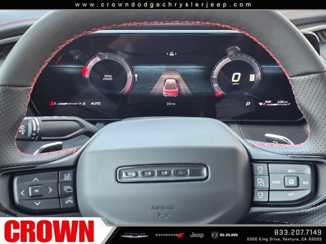 Diamond Black Crystal Pearlcoat 2026 Dodge Charger R/T Scat Pack AWD 8-Speed Automatic HO AWD, Black Leather.Recent Arrival!Here at Crown Dodge Chrysler Jeep RAM, we believe that great service means more than just offering our new Dodge, Chrysler, Jeep, and RAM lineup. We believe that great service also includes helpful advice, friendly car financing, and the highest quality parts and repairs for your car. Our staff works hard to make your full automotive experience at our car dealership in Ventura, CA enjoyable, and we look forward to helping you today! All vehicles at Crown Dodge have our SWAT security system $995, Nitro $499, Clear Shield $395, touchscreen $395, wheel locks $395, windshield treatment $995, pulse breaking lights $395, paint and fabric protection, $1295pre-installed, Battery For Life $995.Crown Trade in Bonus $2500 Must trade in a 2019 or newer vehicle on a retail purchase. Trade in must have less than 15,000 miles per year, clean title, and vehicle history report. Must finance through Crown Preferred Lending Financial institutions to qualify, all subject to approved credit. Minimum amount financed $30,000 ENDS 03/31/2026 STANDALONE APR financing is offered as a standalone incentive and is not eligible for combination with any other offers, incentives, or discounts.The vehicle depicted is NOT the actual vehicle offered for sale by the Dealer. The photo represents a similar vehicle of the year, make, and model of the actual vehicle. Crown Dodge is home of the low-price guarantee!